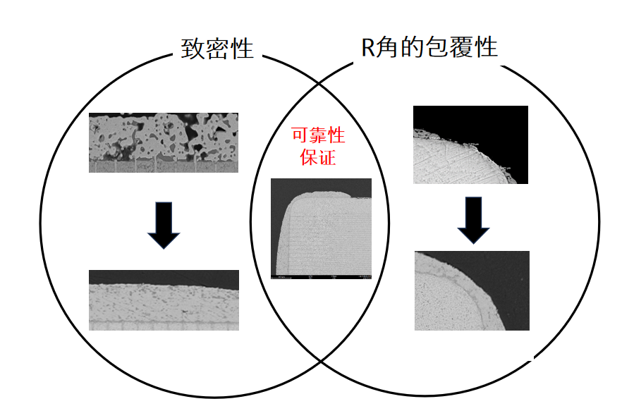 不同廠家漿料所形成的端電極結構對比,百銳新的致密性、可靠性、R角的包覆性好