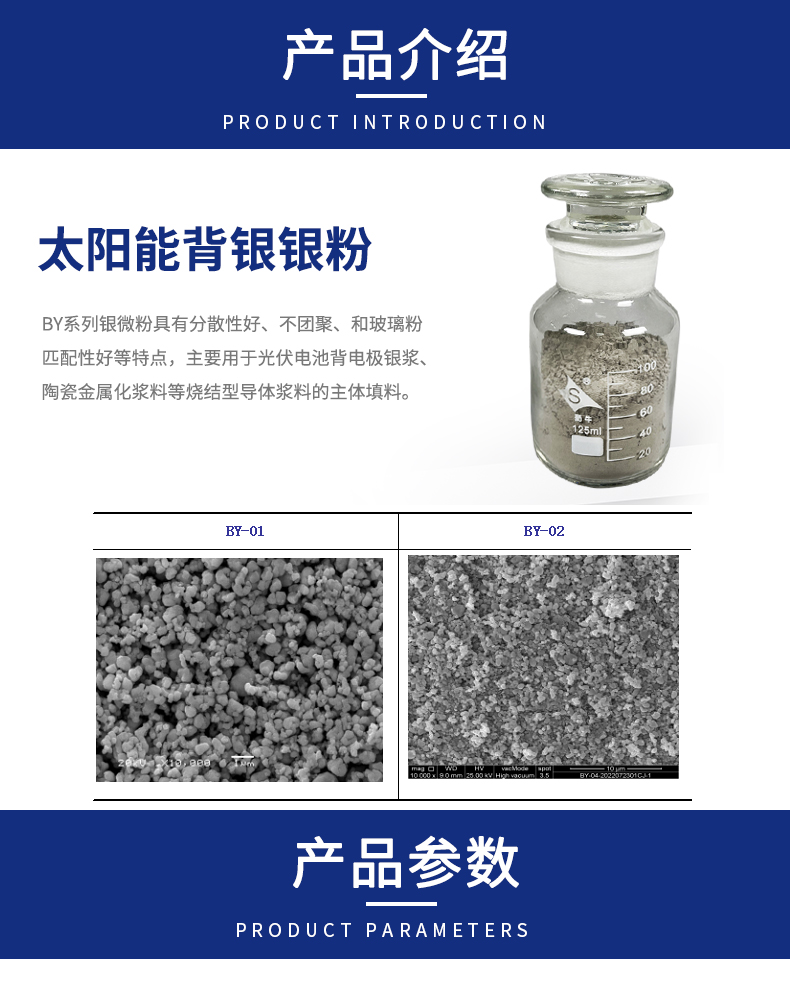 ZRBY系列銀微粉具有分散性好、不團(tuán)聚、和玻璃粉匹配性好等特點,主要用于光伏電池背電極銀漿、陶瓷金屬化漿料等燒結(jié)型導(dǎo)體漿料的主體填料。
